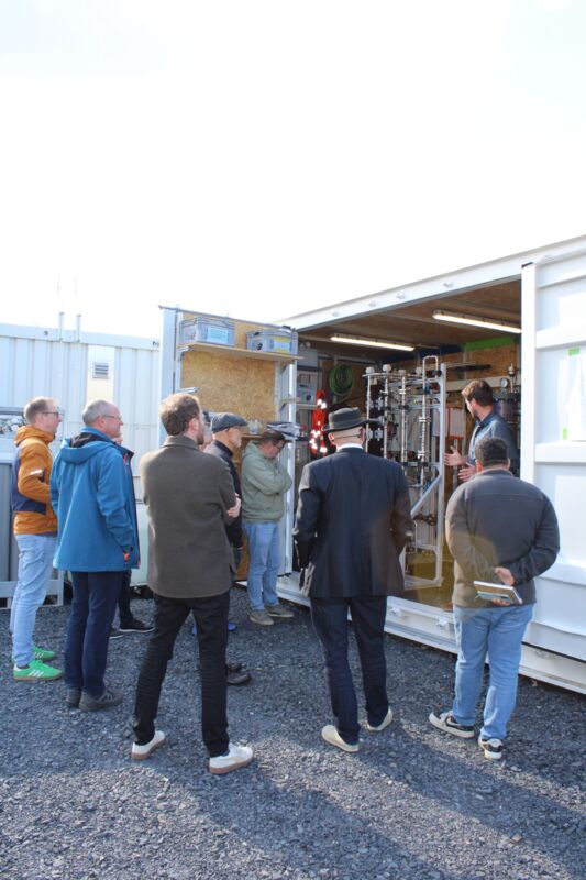 Mit dem reichhaltigen Vortragsprogramm war die Veranstaltung jedoch noch nicht zu Ende. Zum Abschluss reisten die Teilnehmenden zur Kläranlage Heubisch der Wasserwerke Sonneberg. Hier konnten sie sich live einen Eindruck der Arbeit rund um das Verbundprojekt Pho2zon verschaffen. Besichtigt wurden die Versuchskläranlage, die Elektrolyse und Ozonierung mit Erläuterungen zu den einzelnen Prozessen von den zuständigen Projektmitarbeitenden, die natürlich auch alle Fragen rund um das Projekt beantworteten. So konnten die Teilnehmenden einen einmaligen und tiefen Einblick in die Arbeit des Konsortiums erhalten.